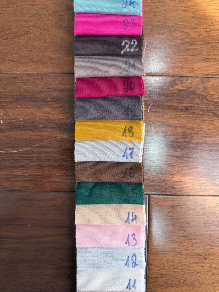 Bảng màu vải Chân cua Tici/ Vảy cá Tici tại Kho vải sỉ Hoàng Kim. Chúng tôi có nhận đặt hàng theo màu riêng nếu khách hàng có nhu cầu với số lượng tối thiểu (MOQ) chỉ từ 300kg.